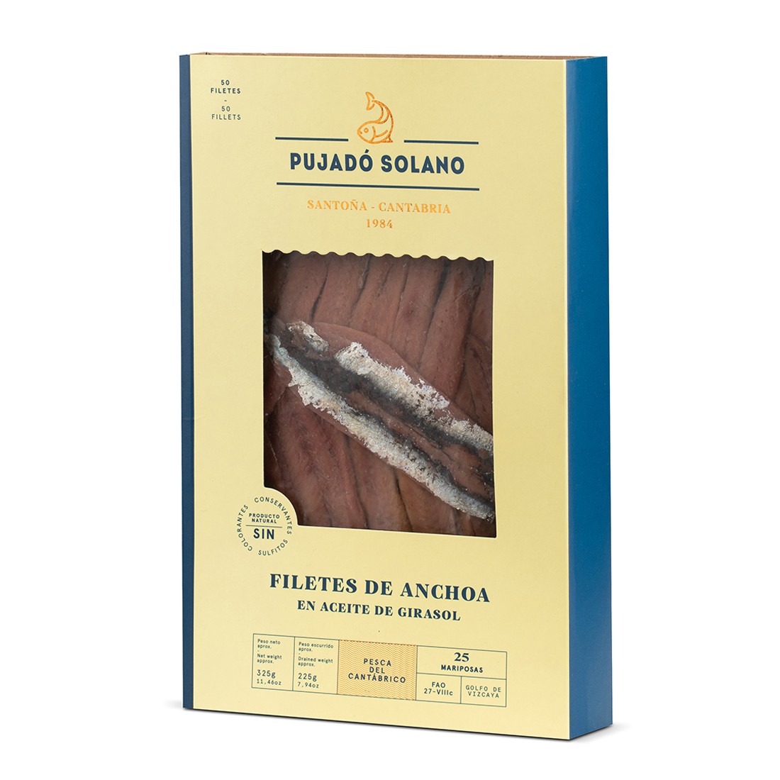 Ingredientes: anchoas del Cantábrico (Engraulis encrasicholus), aceite de girasol y sal marina.