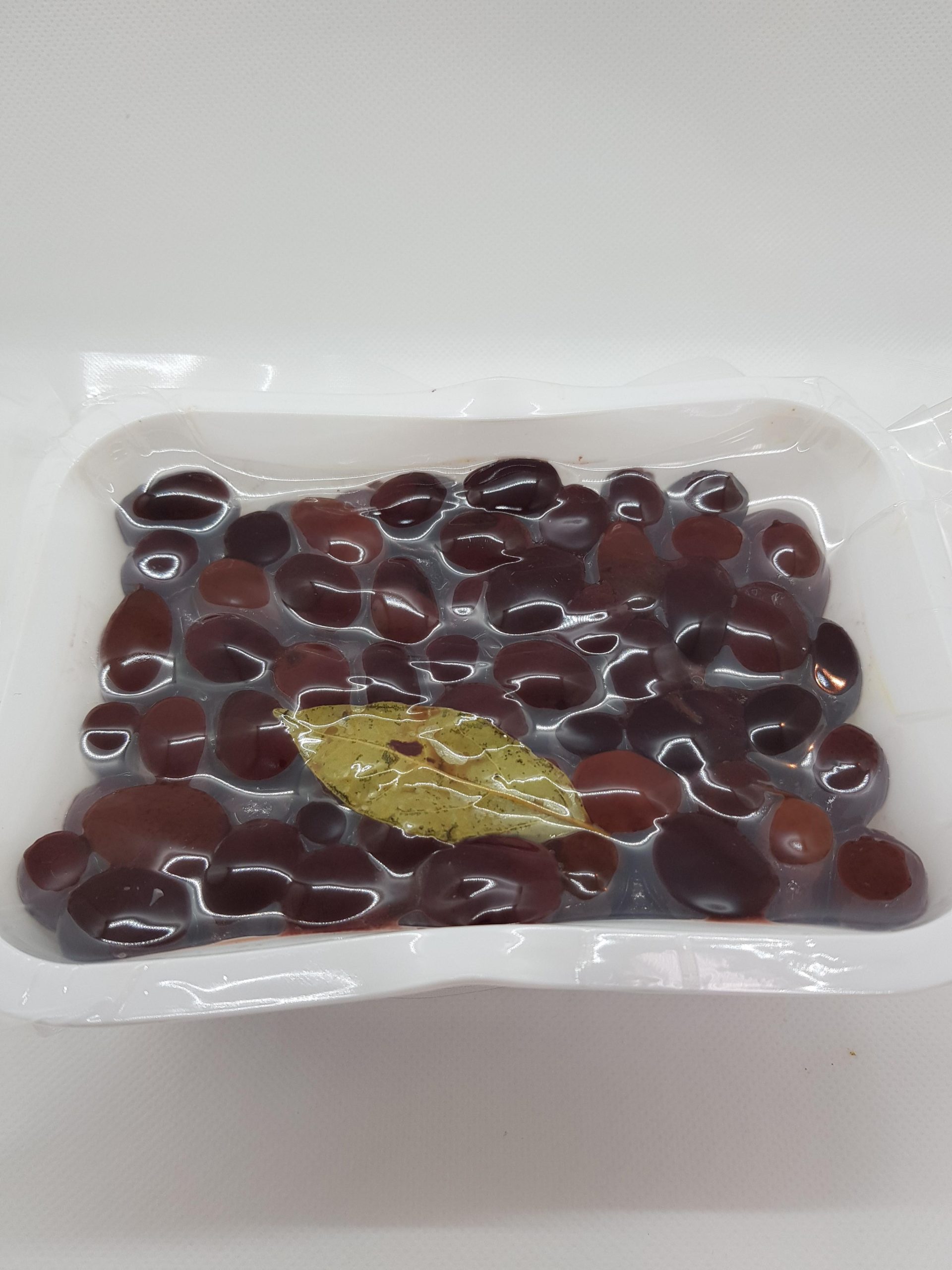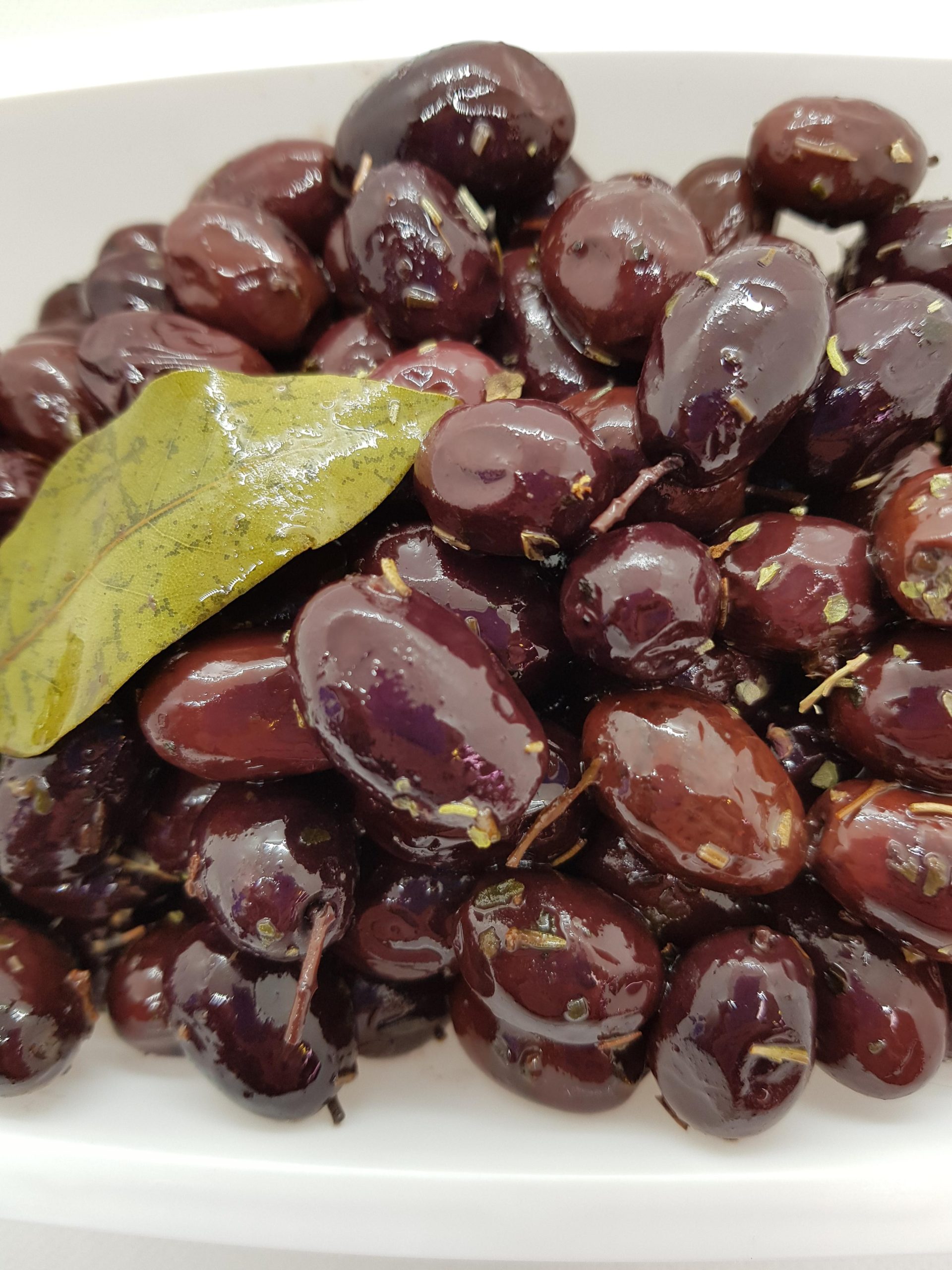 Aceituna negra de Aragón aderezada con hierbas aromáticas y un toque de aceite.