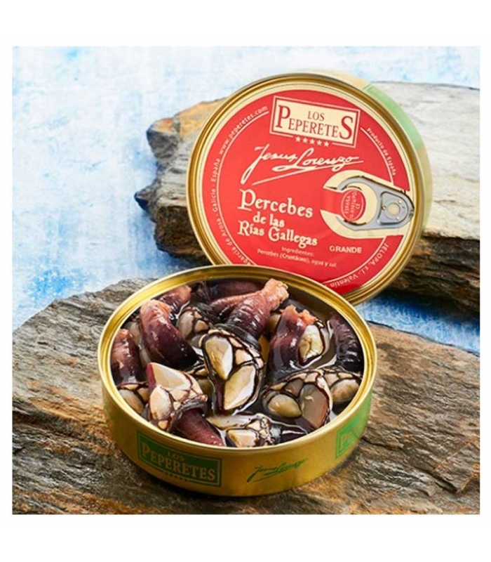 A product that Los Peperetes presents as a novelty, our company is the first to present it in canned form. The barnacle is one of the most famous crustaceans of Galicia. It is a scarce product and difficult to catch, as they live in rocky areas of strong undertows where the open sea hits violently, posing a great risk to their collectors, the “percebeiros”. For all these reasons it is one of the most appreciated and valued delicacies of Galicia.