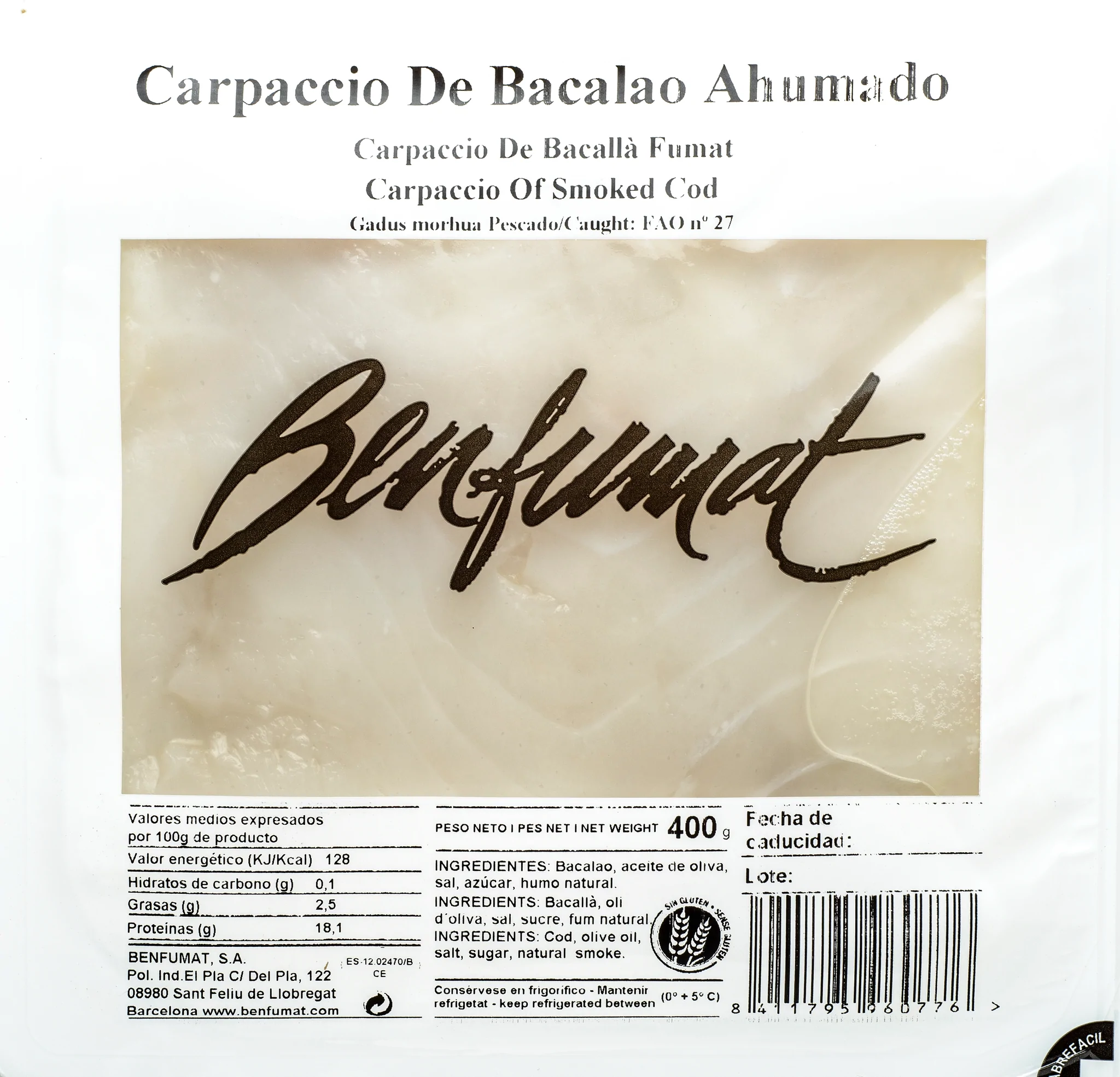 Carpaccio de bacalao ahumado en aceite de oliva. 400 g