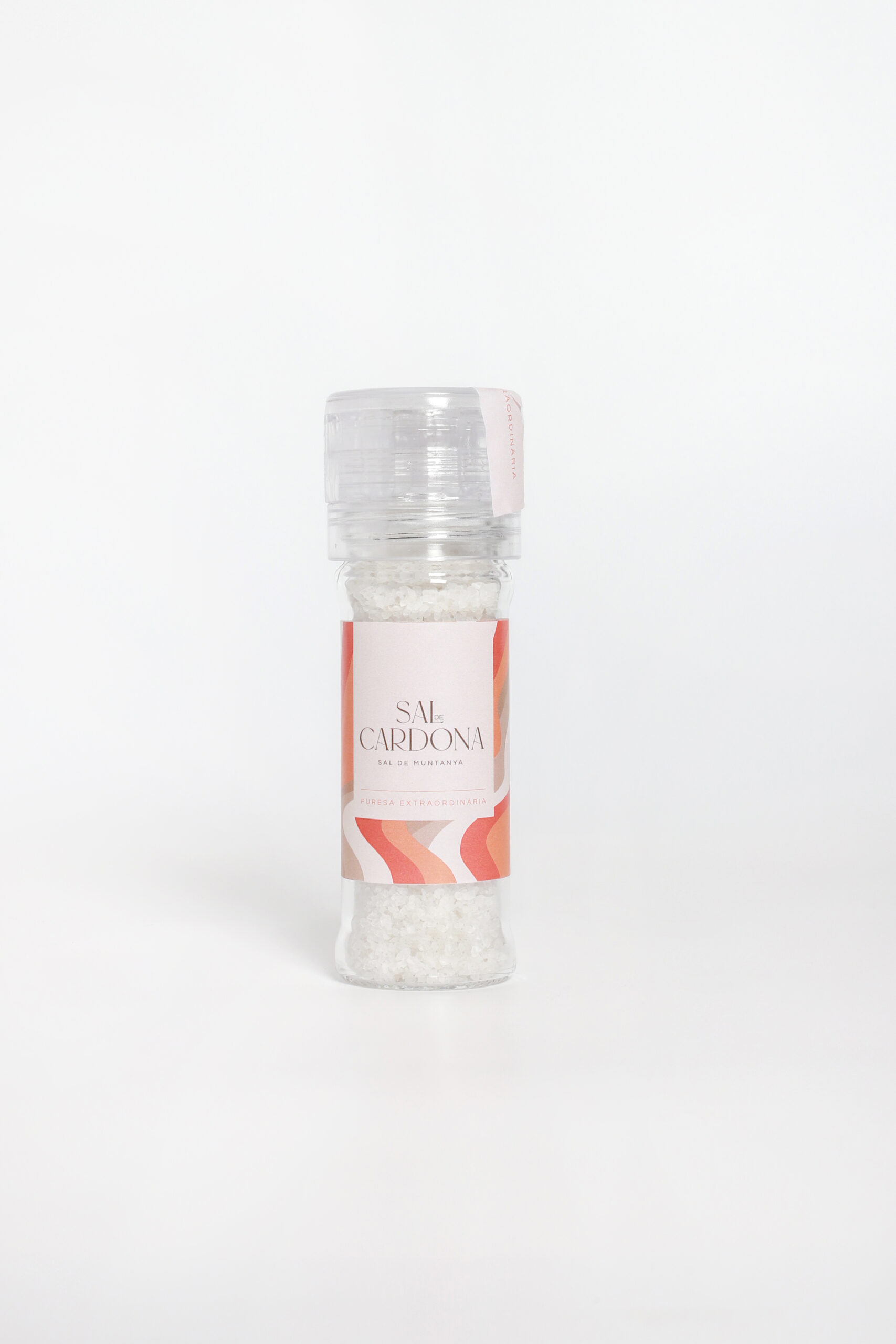 S’obté d’esmicolar la roca extreta del cor del diapir de la vall salina de Cardona. La seva estructura cristal·lina compacta explica la puresa i alta concentració, igual que l’aspecte transparent i la cristal·lització cúbica perfecta d’aquesta sal. A més, no conté elements químics que la puguin desvirtuar.